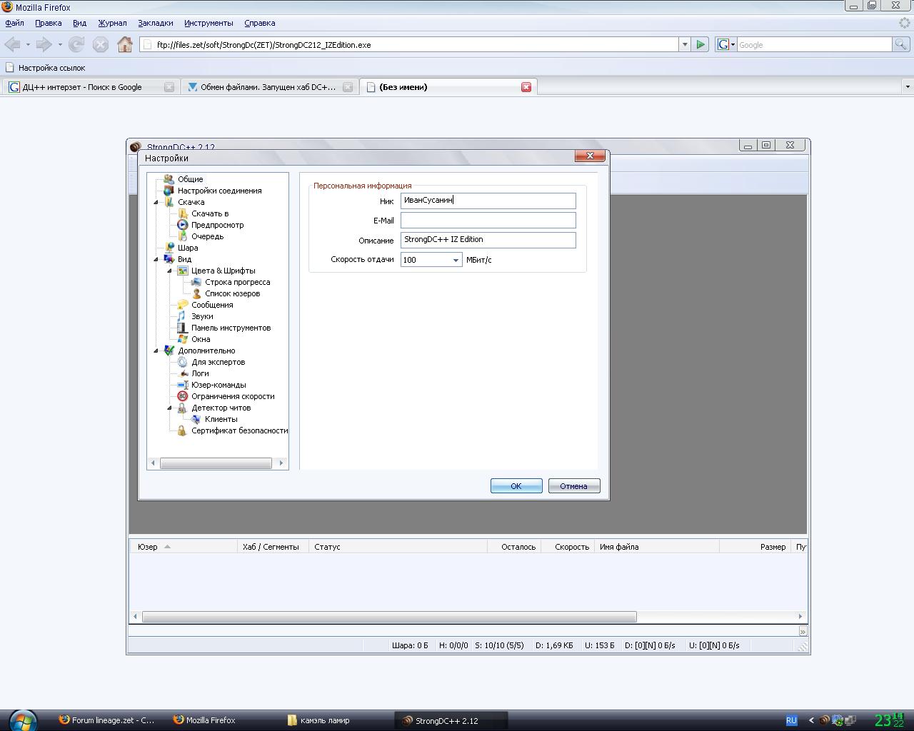 Если вы не желаете ждать истечения этих злополучных 10ти часов то можете попробовать скачать клиент(тот же заархивированный клиент) с DC++ у пользователя с ником DarkDraiver или же у пользователя с ником SEonlySE. Для тех у кого DC++ есть и уже настроен всё нижеуказанное можно не читать, т.к. будет описана подробная настройка файлообменника( для блондинок ).и так начнём: