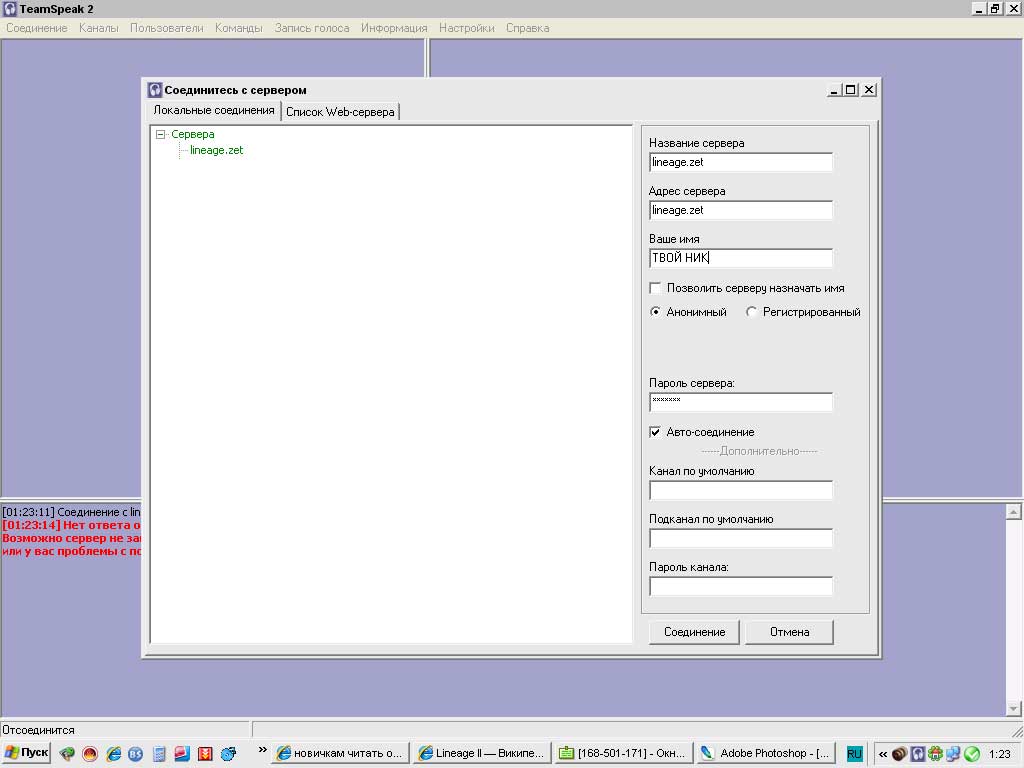 Клиент TeamSpeak2 версии 2.0.32.60 + руссификация. Программа для голосового общения с напарниками во время многопользовательских сетевых игр.